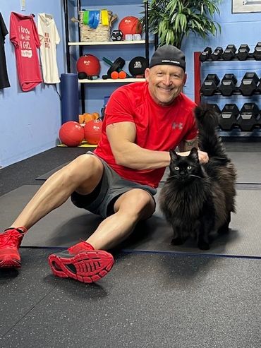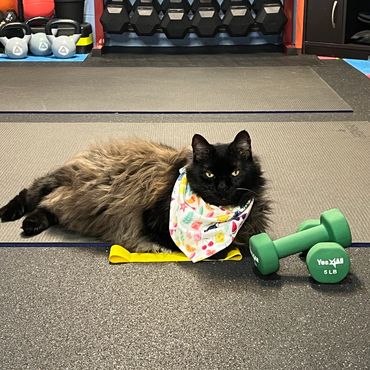 We take your fitness goals seriously. We understand that being a healthy weight and gaining muscle can be challenging, and our goal is to help you overcome hurdles and reach your goals. We create unique workouts that will hit total body (cardio/strength/core) while each workout can be for any fitness level... We believe in Family Fitness as well, with the incorporation of our Norwegian Forest Rescue Cat, Albert...He entertains those of all ages, while working out!